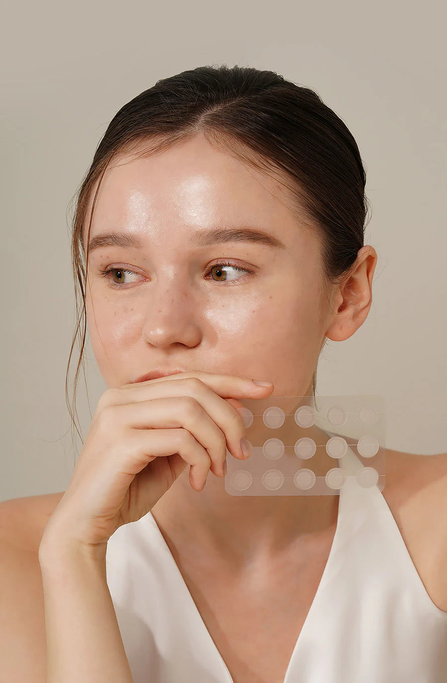 1. Remove the Spot Patch from the plastic film and place onto the acne spot.